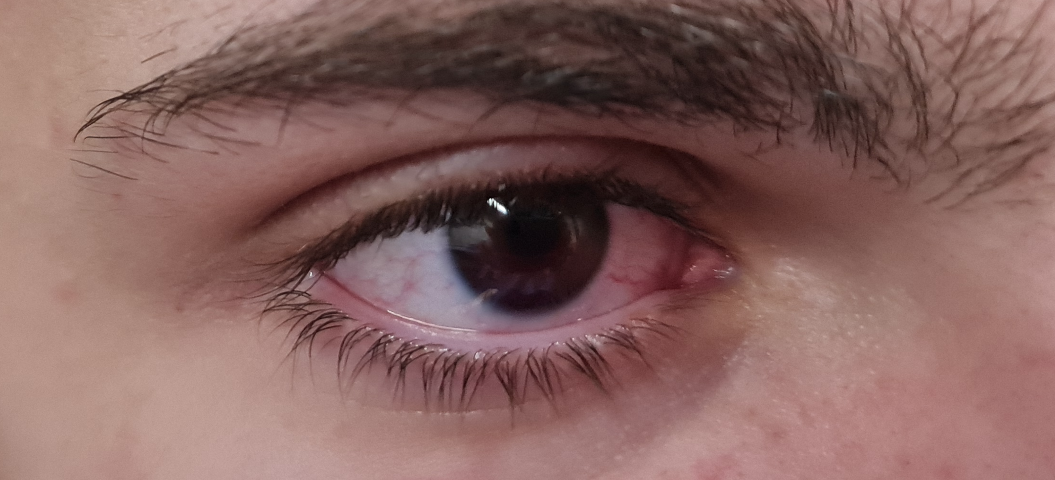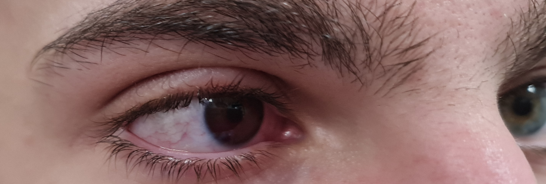 Un jeune homme se présente aux urgences quelques heures après un un traumatisme oculaire avec un ballon de faible cinétiqe. Il consulte pour un flou visuel et un changement e la couleur de son œil observé par ses proches. A l’examen clinique une hétérochromie est constaté. La motricité oculaire est normale et indolore et l’acuité difficilement évaluable en raison d’une impression du patient de regarder « à travers du brouillard ». L’examen des nerfs crâniens est dans la norme et la palpation des os du visage indolore.