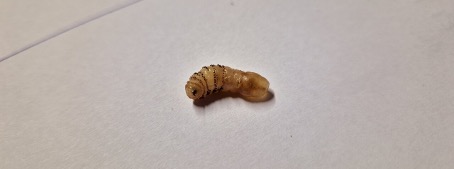 Le jour de la consultation, lorsqu'il applique une pression, une larve commence à sortir de la lésion, que le patient évacue.